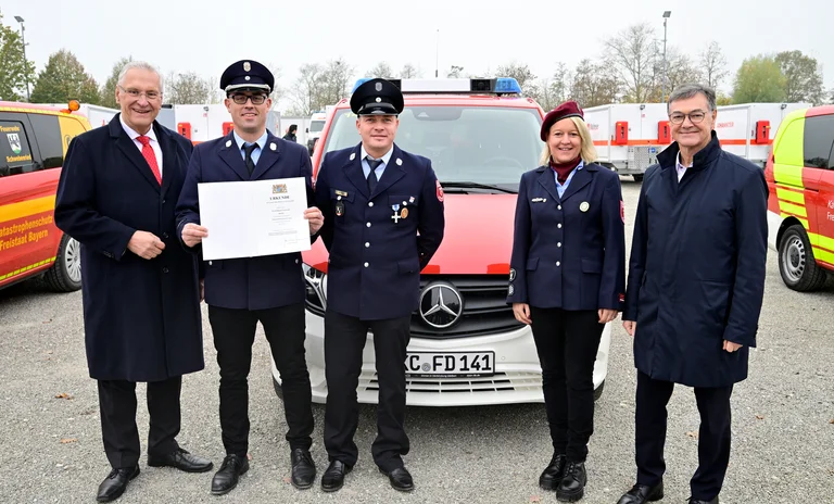Fotos: Matthias Merz | Bayerisches Innenministerium; weitere Bilder abrufbar unter https://medien.innenministerium.bayern.de/veranstaltungen/fahrzeuguebergabe-an-hilfsorganisationen-und-feuerwehren-110302