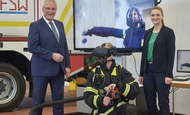 Meilenstein für moderne und digitale Feuerwehrausbildung: Bayerns Innenminister Joachim Herrmann und Digitalministerin Judith Gerlach stellen virtuelles Training zur Innenbrandbekämpfung vor - Realitätsnah und gefahrlos üben