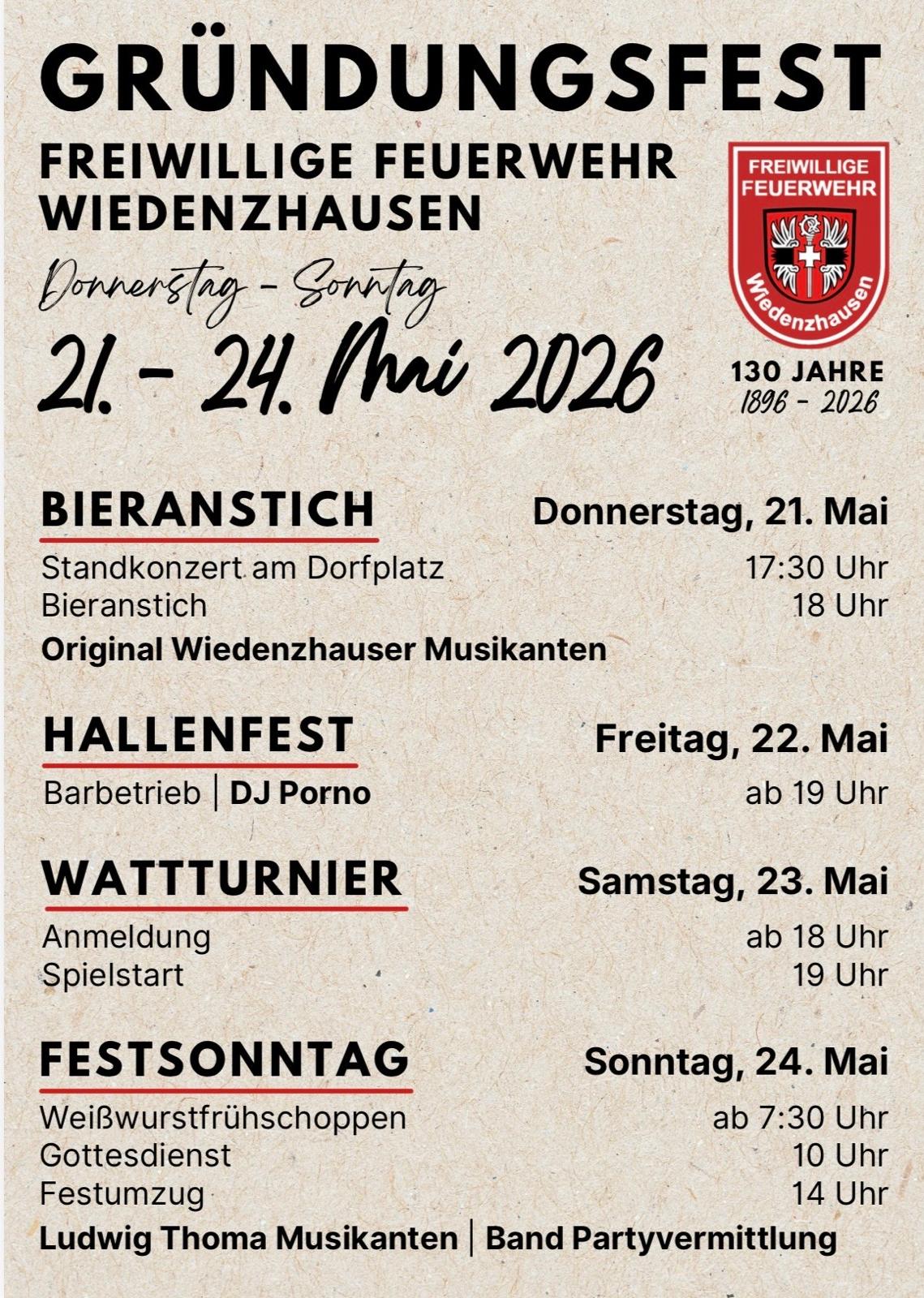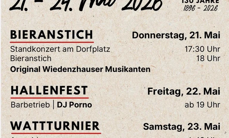 Wir feiern vom 21.05.-24.05. unser 130. Jähriges Gründungsfest